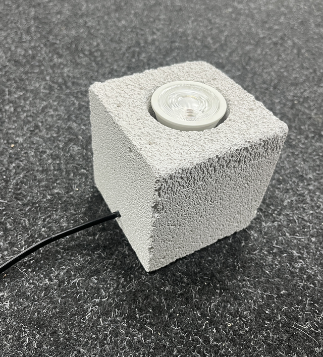 Beispielbild: Die abgebildete Lampe dient als Muster. Farbverläufe, Löcher und Größe können je nach Porenbeton-Stück variieren.
